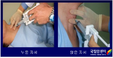 ④미세침흡인세포검사 : 초음파 영상 소견이 암으로 의심되는 경우 시행합니다. 가느다란 바늘로 결절 부위의 세포를 채취해 암세포의 존재여부를 판단하는 검사입니다. 주사침이 가늘어 마취가 필요 없고(!) 통증이 적으며 부작용도 없습니다.