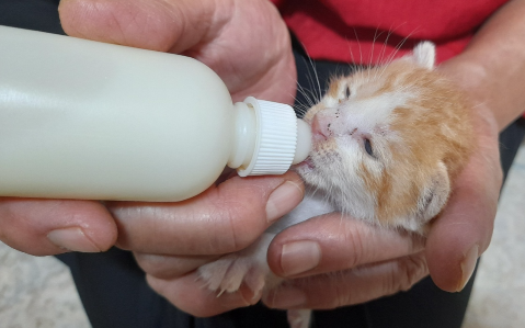분유 먹일 때 아기 고양이를 눕히지 말고