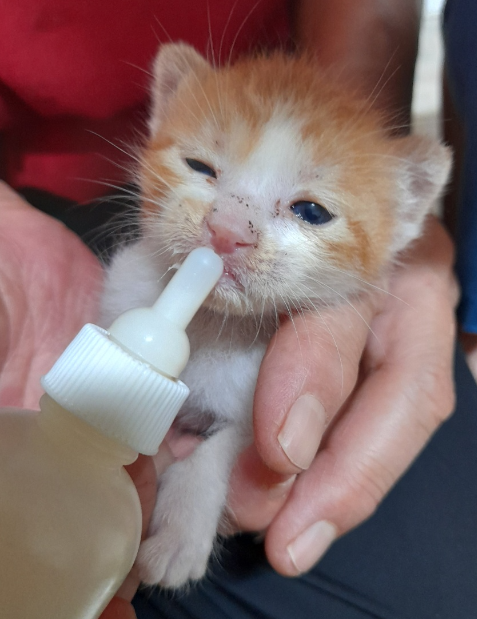 아기 고양이는 사람이 먹는 우유를 주면 안된다.